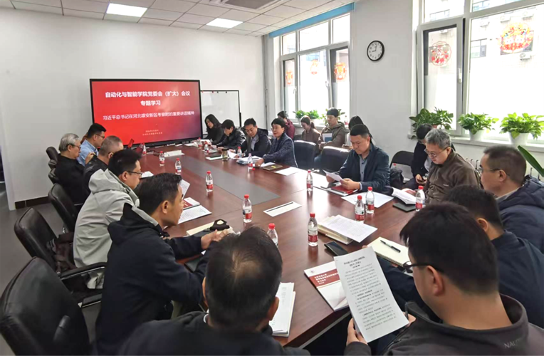 3月30日上午,自动化智能学院召开党委(扩大)会议,第一议题全面学习贯彻习近平总书记考察雄安新区时的重要讲话精神,传达落实学校党委相关部署要求,这是学院党委继3月24日在机关队伍调研暨管理服务工作系统化启动会上首次学习传达后的集中学习传达。会议由学院党委书记王虹英主持,学院党委委员、领导班子成员、各系所(中心)主任/所长、教工党支部书记及各机关科室科长参加会议。